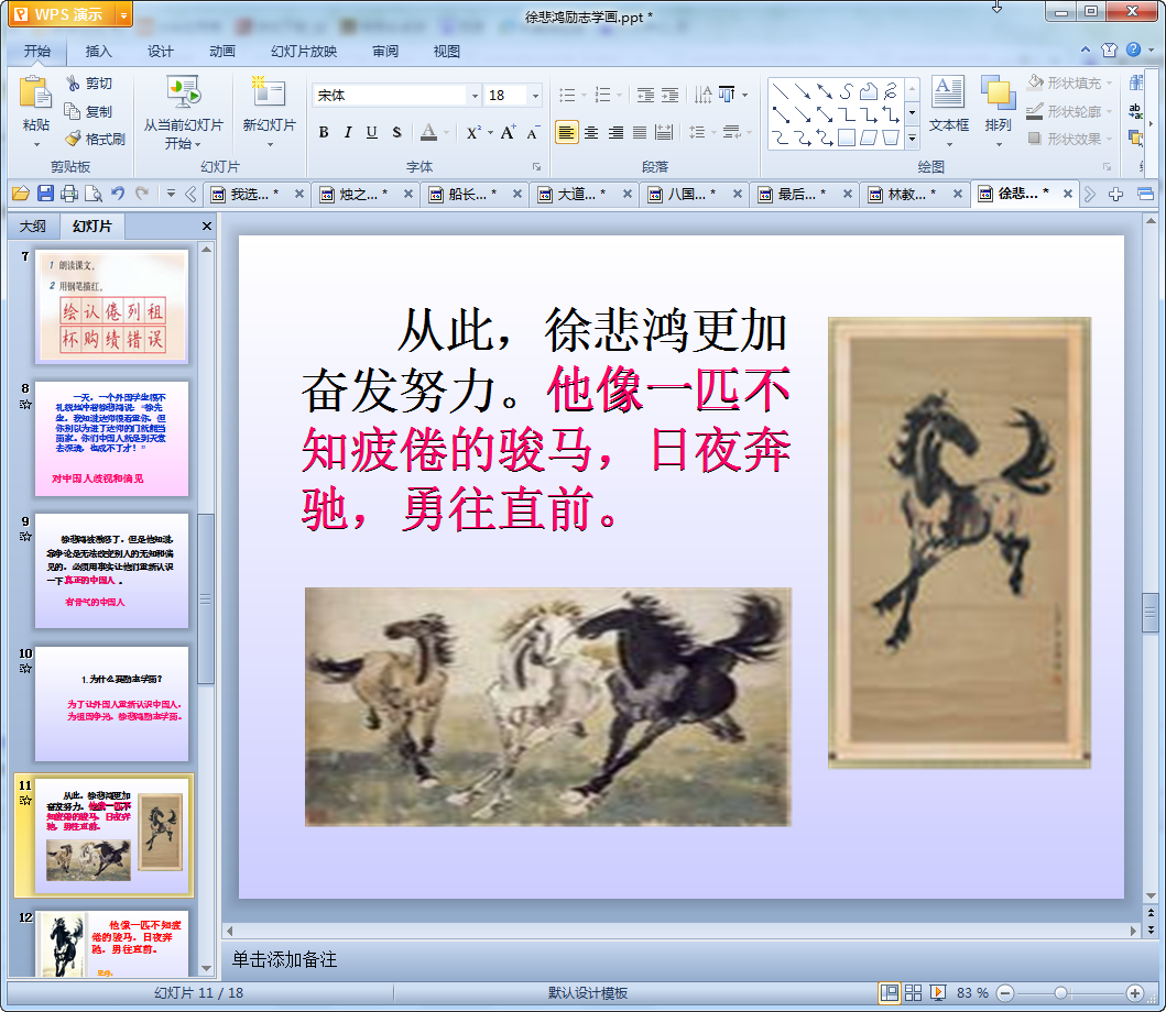 徐悲鸿励志学画教学课件内容介绍