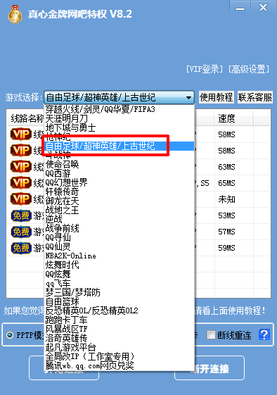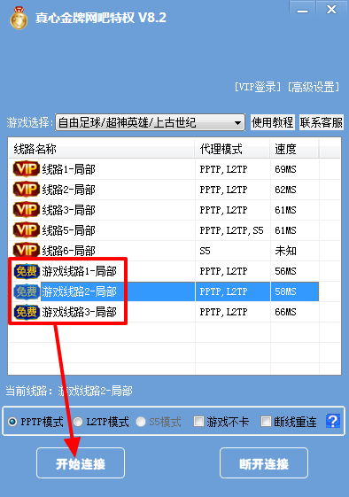 注意:连接上后,如果游戏卡顿,请勾选“游戏不卡”,效果会好一些哦。