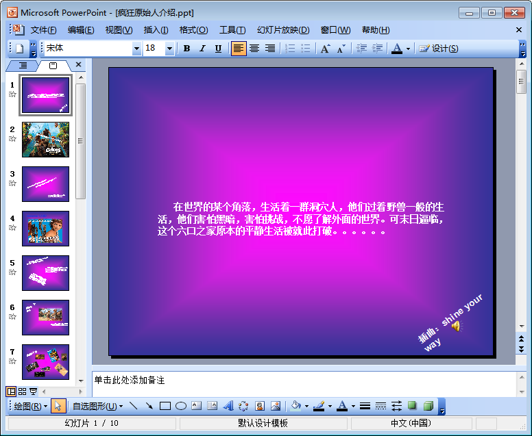 似乎,我们已经过了看动画电影的年龄,但疯狂原始人这部电影会让你有所收获——看到有朋友这样评价疯狂原始人这部电影,小编觉得——嗯!他说得好有道理呢!为什么这么说呢?或许看了下面这份介绍疯狂原始人电影的ppt之后你就会明白了,感兴趣的朋友们速度围观起来吧!