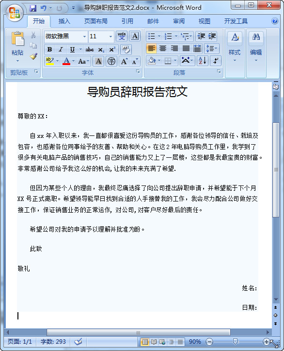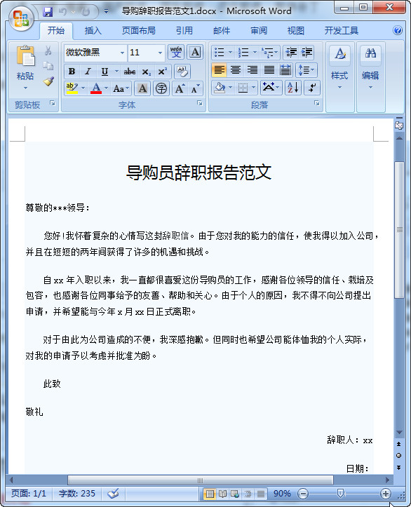 导购辞职报告范文预览