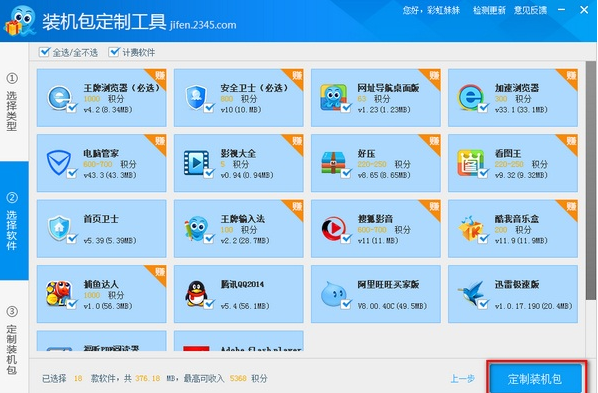 第二步:选择您需要安装的软件,点击“定制装机包”按钮;