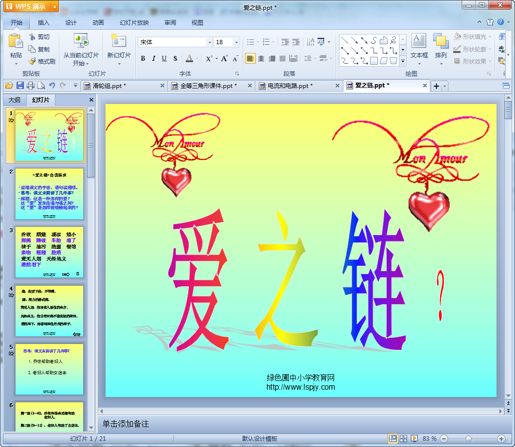 这是一篇小学语文课文爱之链教学课件,该ppt共有21页完全免费并且将文章整理的十分完整清晰,老师们能够轻松的讲解课文学生们也能很容易的理解课文,有需要的朋友可以来下载!