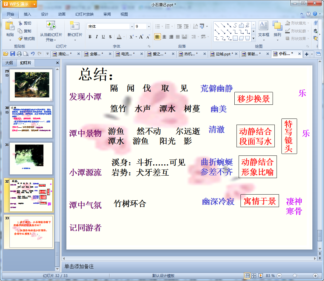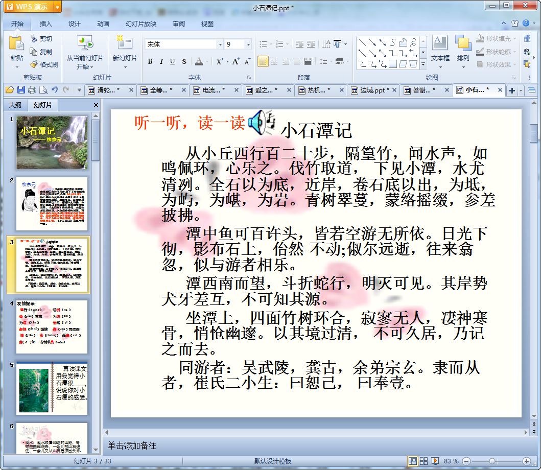 这是一篇初中语文课文小石潭记课件ppt,全篇共33页对文章的重难点都分析的十分清晰有条理性,作者的介绍以及课文的翻译也都有介绍,有需要的老师们可以来下载使用,不会让您失望!