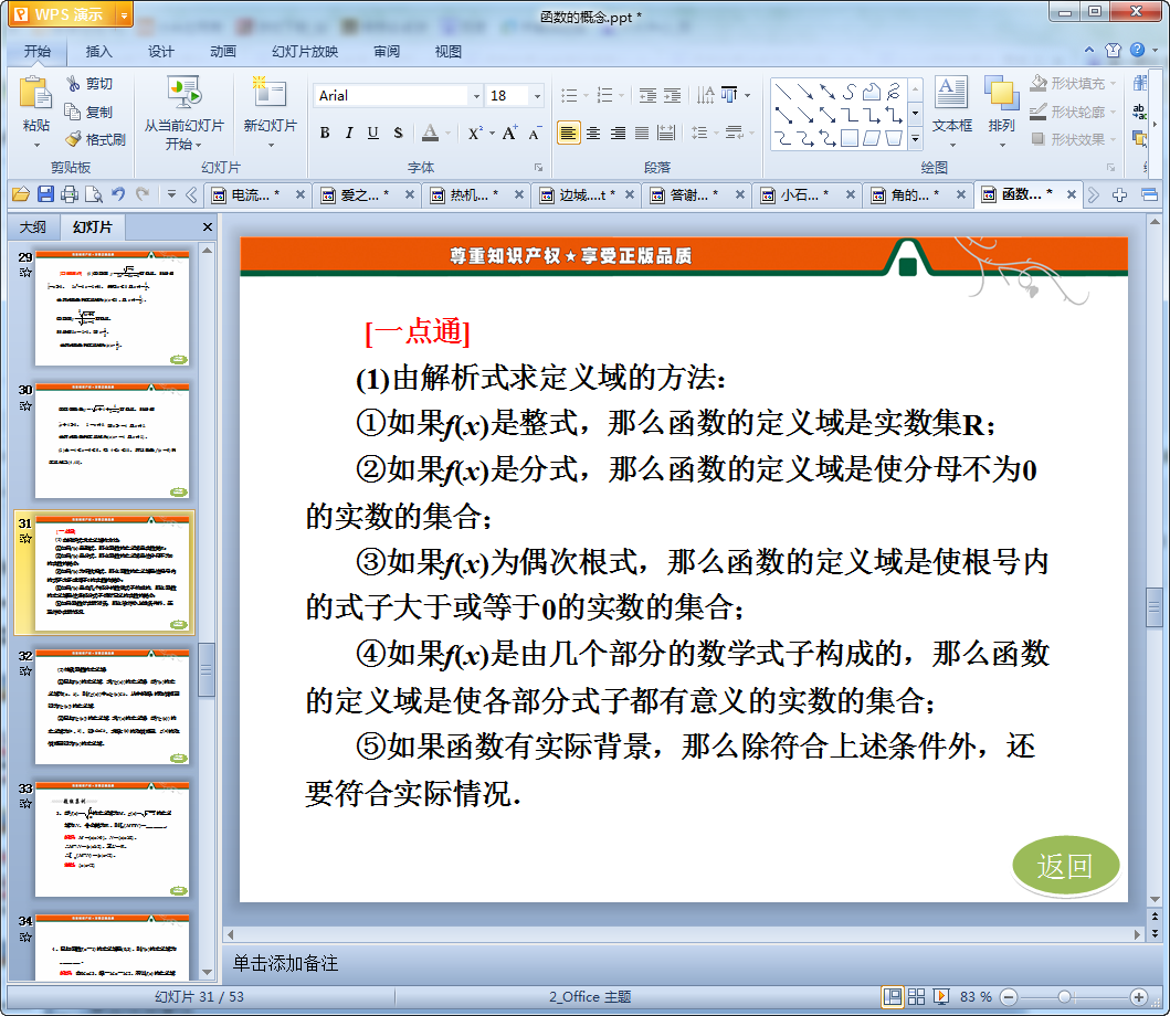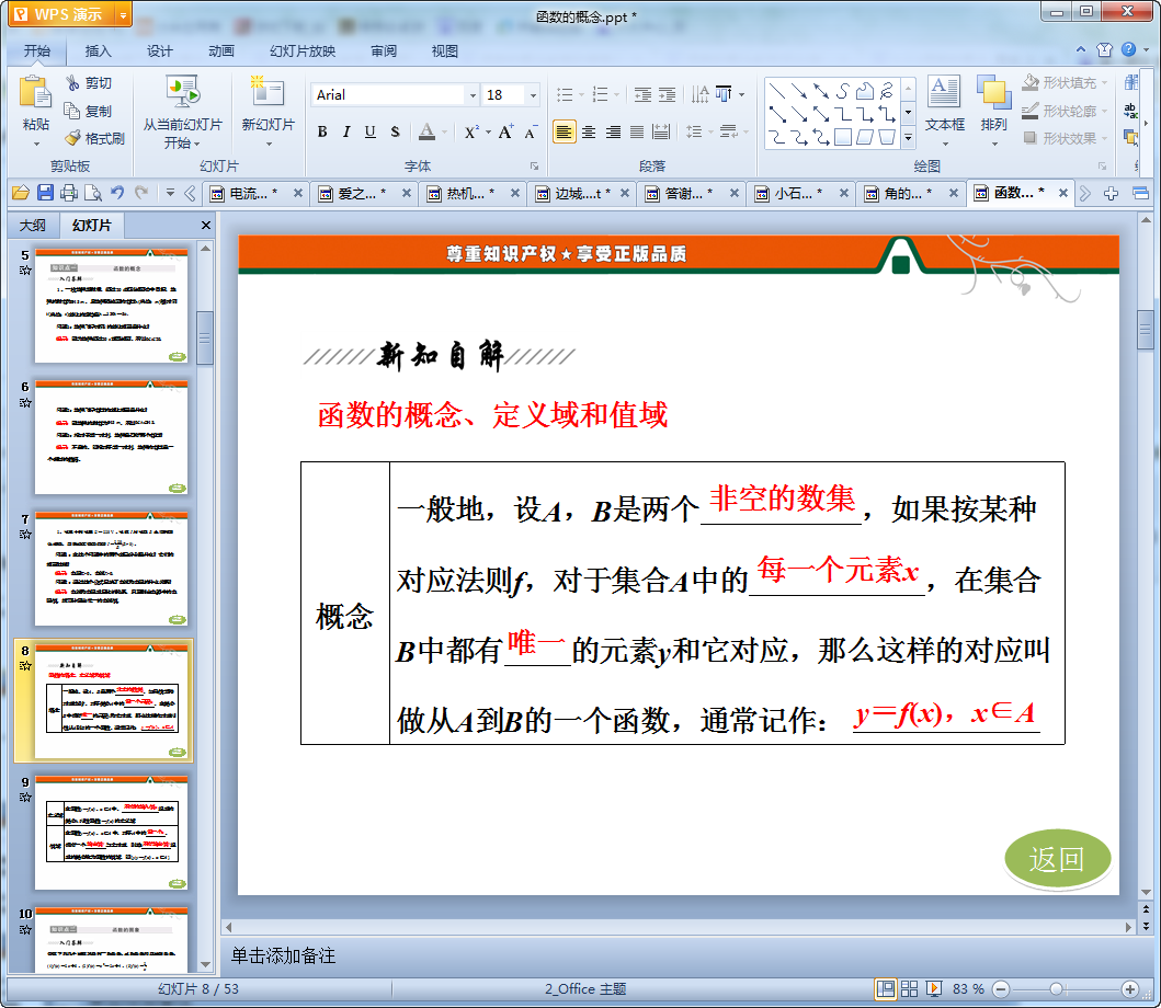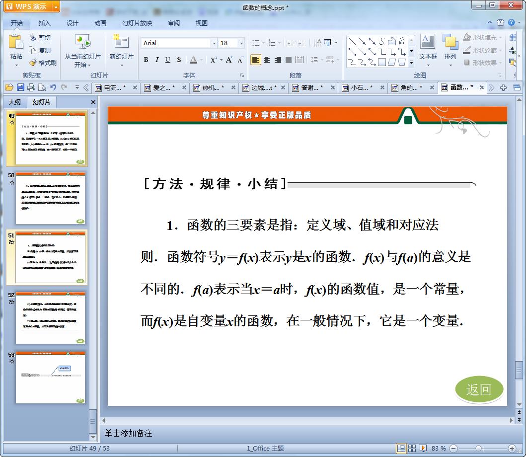 这是一篇高中数学函数的概念教学ppt,对入刚进入高中的学生们来说函数提升到了应外一个层面,对于这种情况,老师们采取ppt教学也许能让学生更容易的理解,而这篇函数的概念教学课件也许能帮到你!