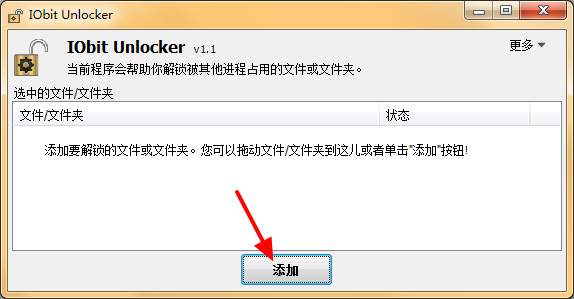 IObit Unlocker 绿色版会在鼠标右键菜单添加项目,方便你右键点击文件/文件夹直接进行解锁删除,或者直接将文件/文件夹拖到该软件窗口也可以。