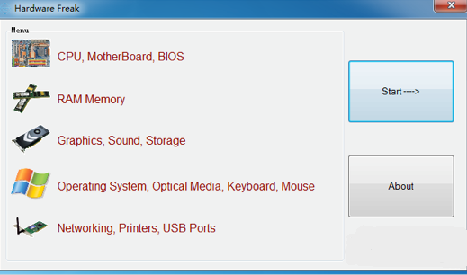 Hardware Freak已经在同类产品中最准确的硬件检测能力,提供计算机上的内部,而不需要打开它的详细信息。加强硬件检测模块是一个详尽的硬件持有超过12万条目的数据库。附加模块概述处理器频率,检查CRT和液晶显示器的状态,并强调制度,以揭示潜在的硬件故障和散热问题。