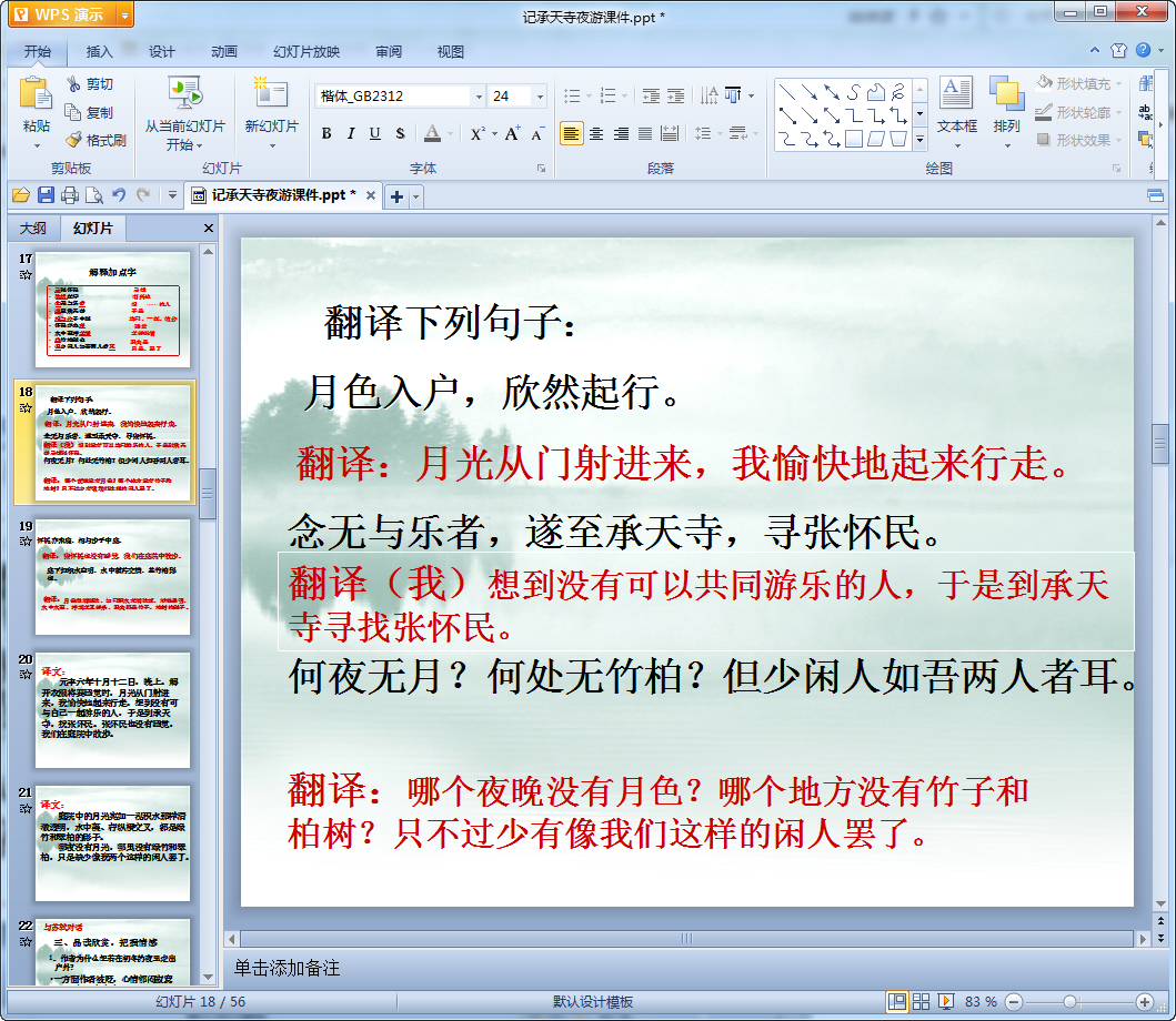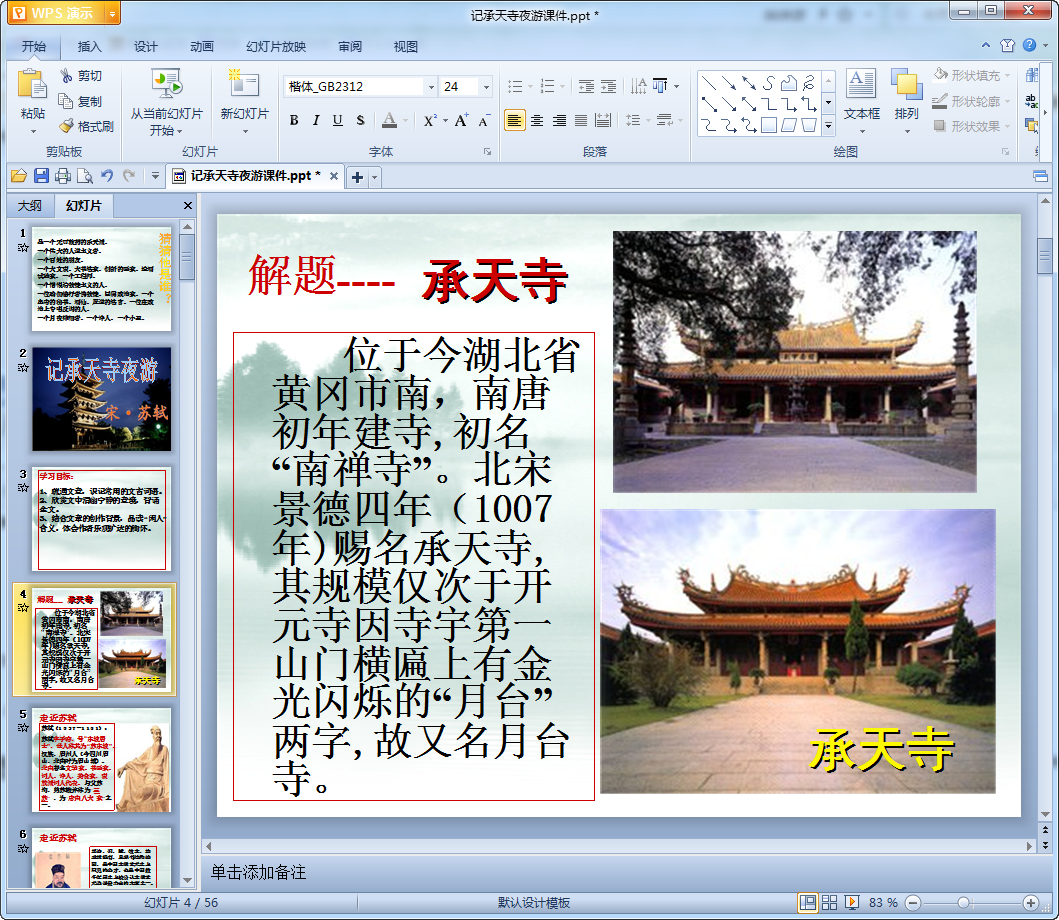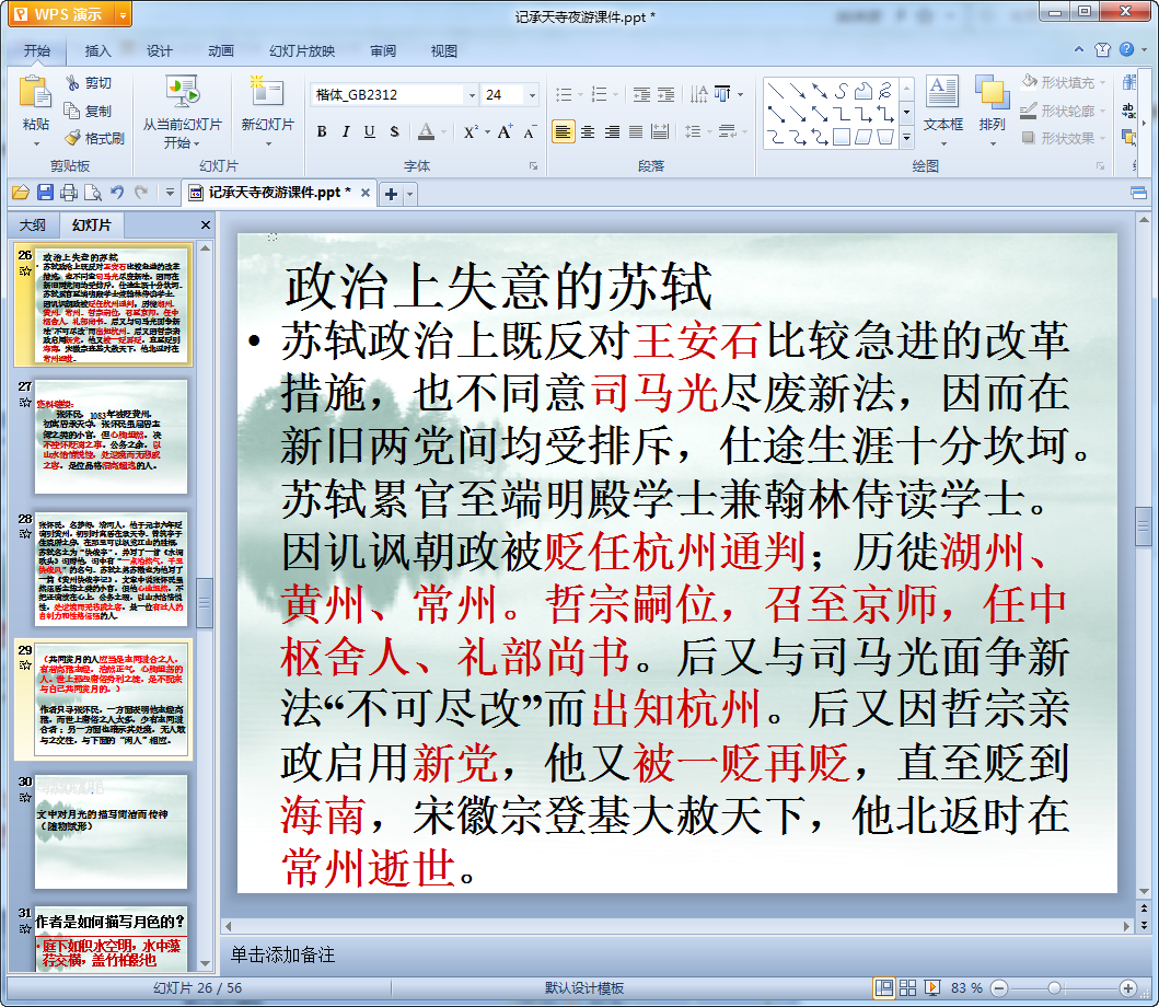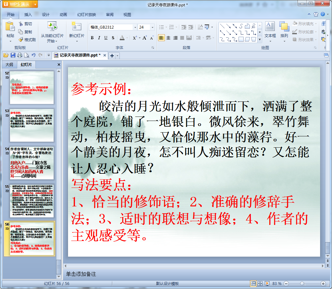 这是一篇语文课文记承天寺夜游教学课件ppt,内容制作十分精美充实,知识点概括全面,是一篇比较不错的教学课件,需要这样一份课件的老师们可以来这边下载使用,该ppt共有56页不会让您失望!