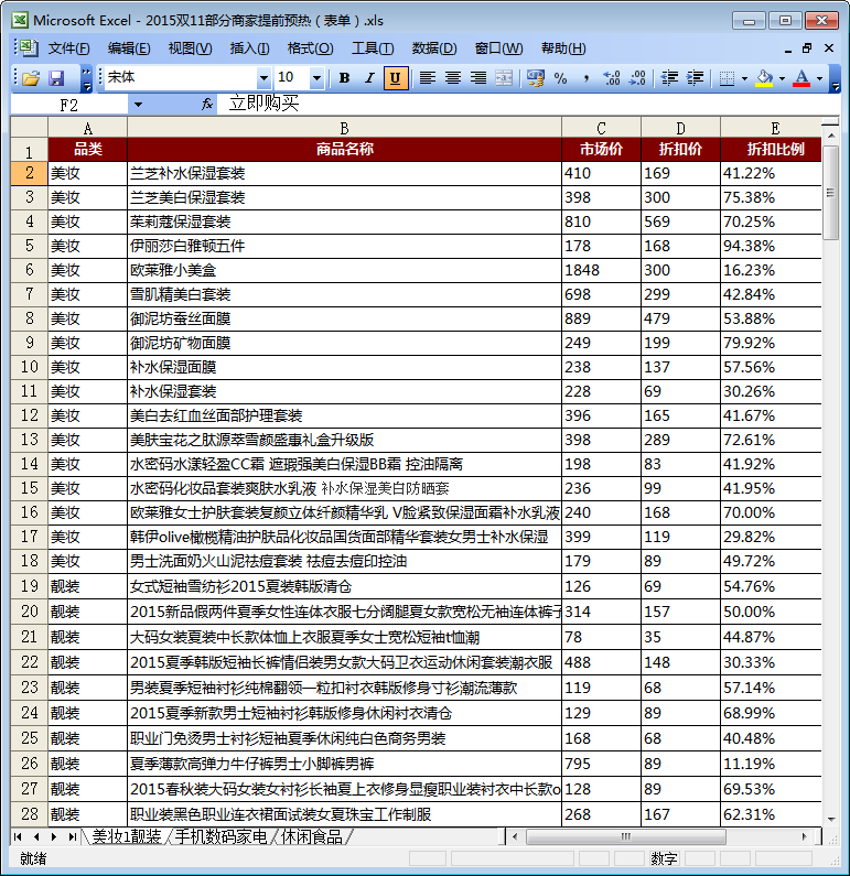 2015双11打折商品清单内容截图