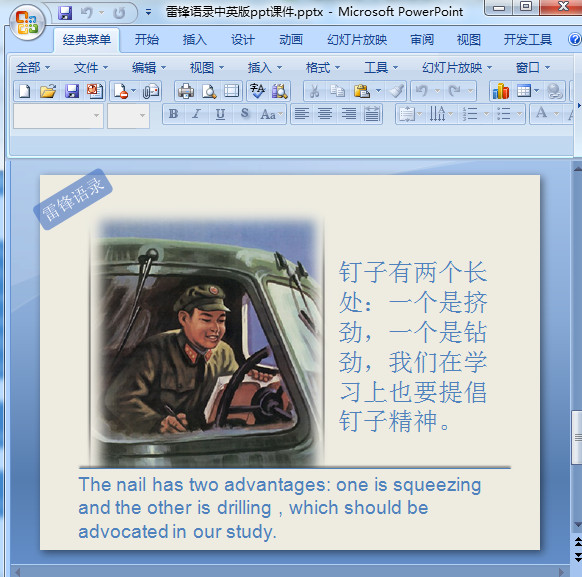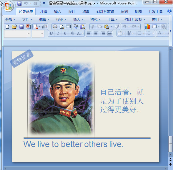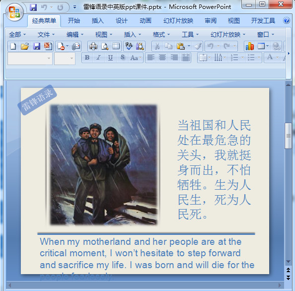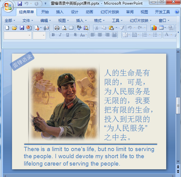 雷锋语录中英文版幻灯片,Quotes from Lei Feng in Chinese and English.PowerPoint;