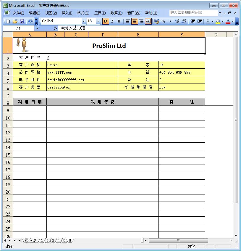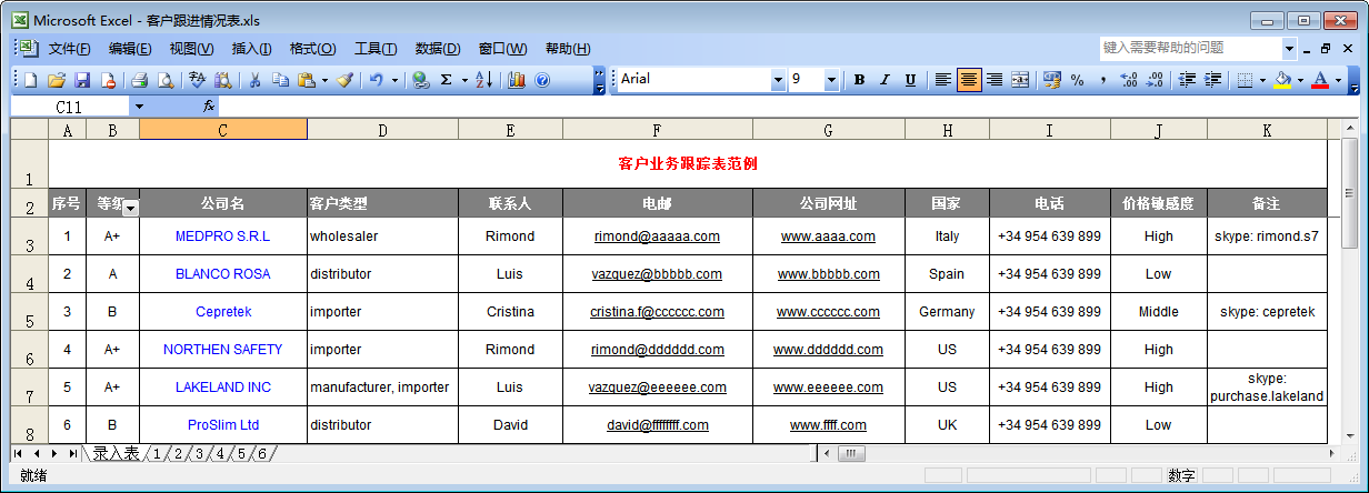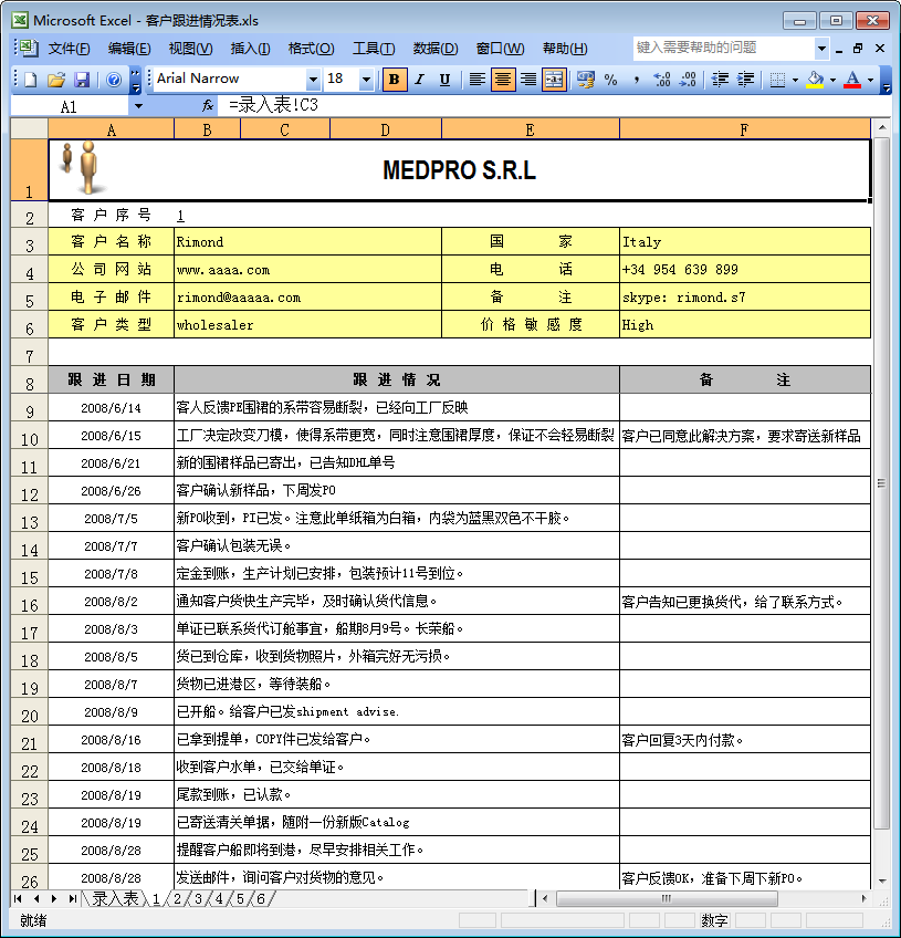 1、客户跟踪的Excel表格,第一感觉就是觉得简单清晰,更新起来很方便,不上新的外贸工具,只是一种新的用法。