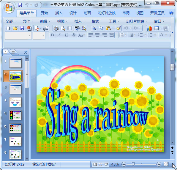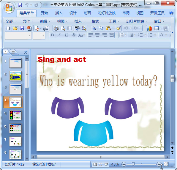 想当初东坡小编读小学的时候,根本就没有学习过英语,一直到了初中才学习的。现在的小朋友们从小学三年级就要开始学习了,所以呢,就带来了一份精美的unit2 colours第二课时ppt课件哦。希望大家喜欢。