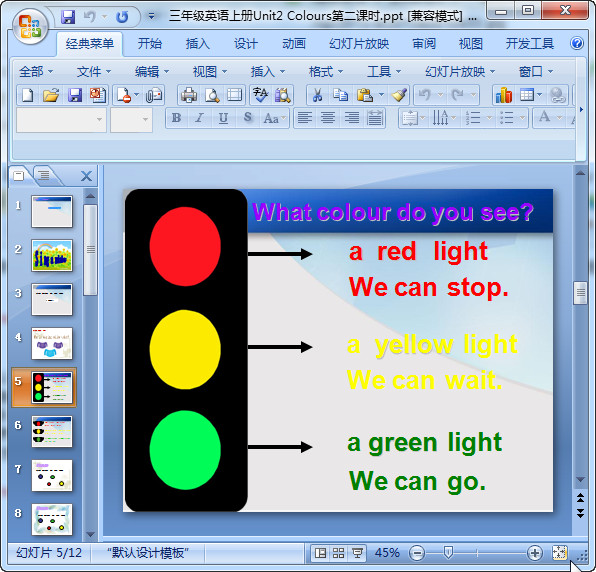 (1)、 能听说、认读blue, green, yellow, red, 这些表示颜色的单词。