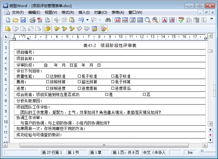 项目评估管理表单内容截图