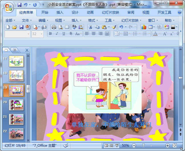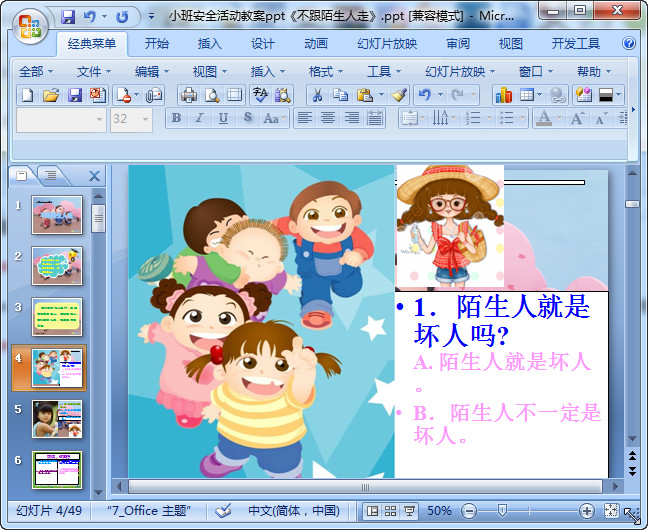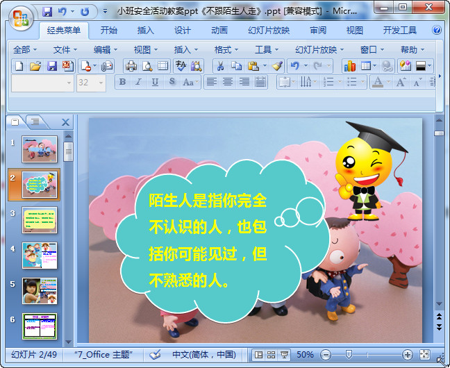 我们经常在电视上、报纸上看到某某孩童走失,父母踏上千里寻找之路。不要说小孩子,就连有些大人也会被陌生人所骗,所以小朋友们一定要保持警惕,那么小朋友们遇到陌生人怎么办,一起来看看这份不跟陌生人走ppt吧!也是一份幼儿安全教育课件!