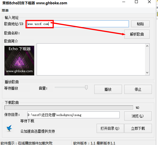 1、输入音乐连接,点击解析歌曲