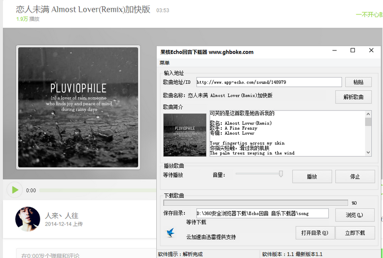 要说最近果核工作室非常的给力,给大家又带来了果核Echo回音下载器,可以让你们根据自己的需要进行试听与下载歌曲,非常值得你们来此进行选择!