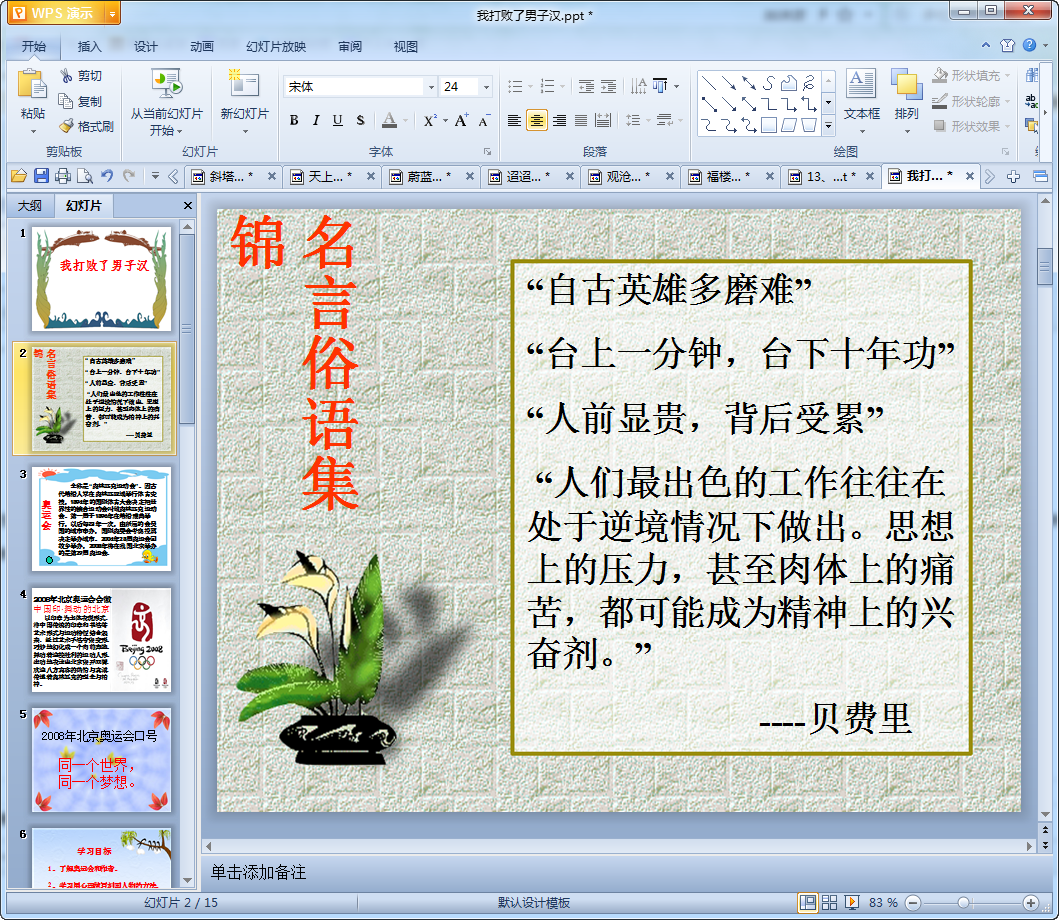 这是一篇语文课文我打败了男子汉教学课件ppt,ppt共有15页,让同学们能够了解奥运会与作者,以及运动员乐观自信的品格,需要这样一份课件的老师们可以选择下载使用!