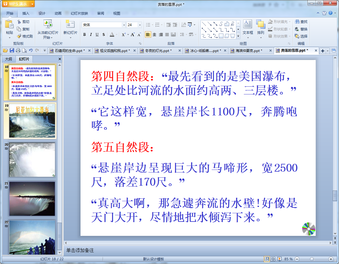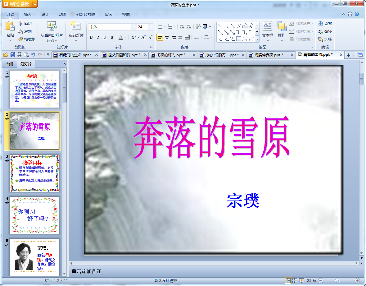 这是一篇由东坡下载站编辑整理的奔落的雪原ppt课件,该ppt共有22页,完整的解读了文章再加上大量的图片能学生们能更简单的了解课文理解课文。有需要的老师们可以来下载使用!