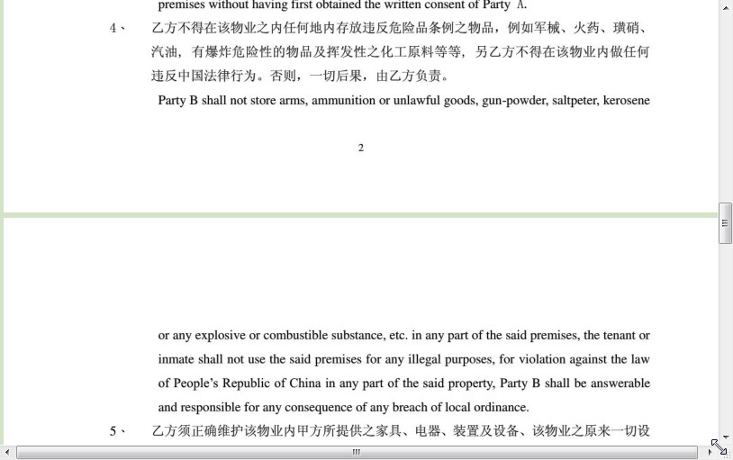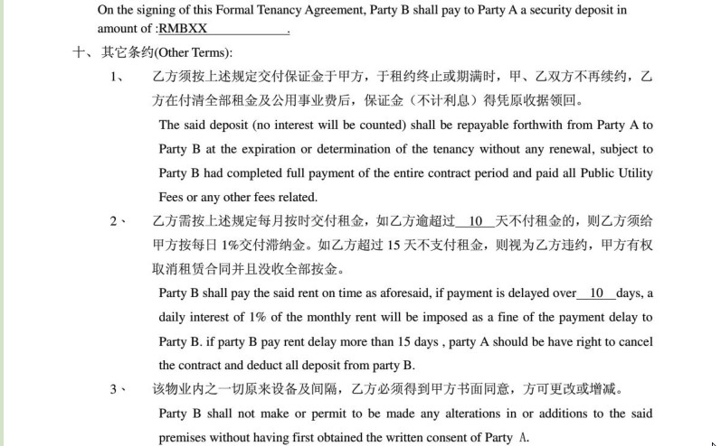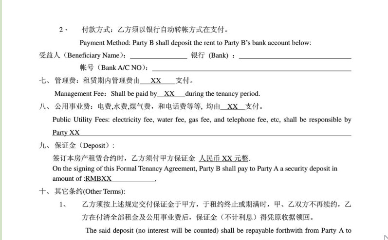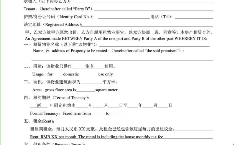 房屋租赁合同中英文版内容介绍