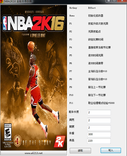 NBA2K16全版本十六项修改器快捷键以及功能说明
