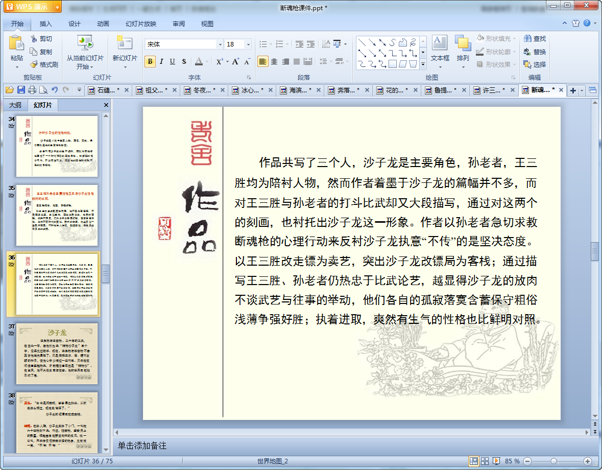 这是高中语文断魂枪ppt课件,该课件共有75页对文章的介绍非常详细,文章的个各个重难点都有解析,非常全面的一篇教学ppt,有需要的老师们可以来下载,不会让你们失望!