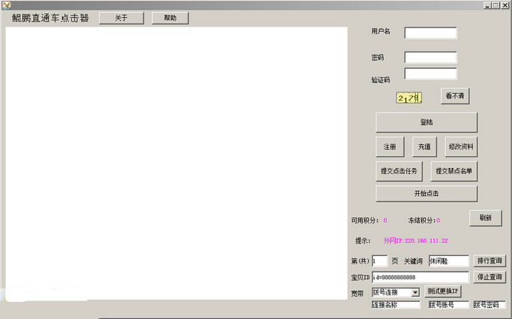 鲲鹏直通车点击器主要是为淘宝掌柜提高直通车转化率和质量得分而开发的,本软件本着“ 我为人人,人人为我”的宗旨,有需要的赶紧来下载使用吧。