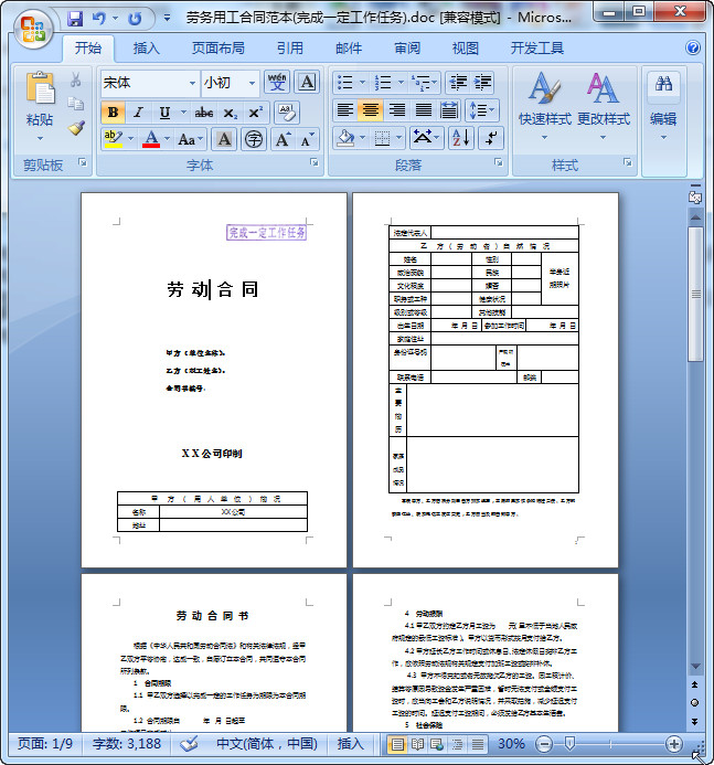 劳务用工合同范本大全预览