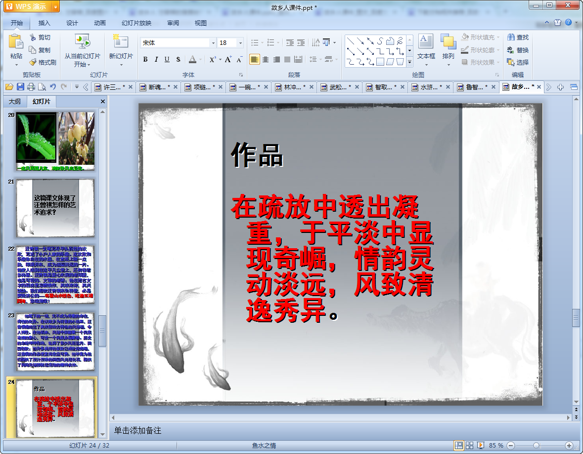 这是一篇语文课文故乡人教学课件,课件共有32页介绍了作者汪曾祺以及对课文的解析归纳,非常不错的一篇教学课件,有兴趣的朋友们可以来下载使用!