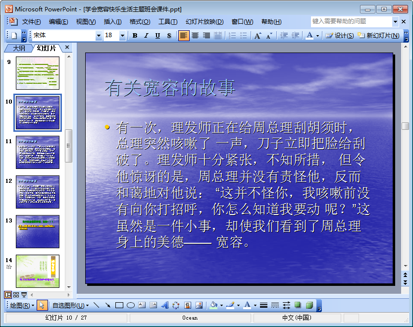 从小到大父母老师就教导我们“学会宽容”,那么到底什么是宽容呢?我们又该如何宽容他人呢?本节内容东坡小编为大家整理带来的是一份学会宽容快乐生活主题班会课件ppt,不妨一起来重温一下关于宽容的故事以及宽容的含义吧!