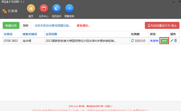 在任务中心这里可以发布或者暂停任务,也可以编辑或者删除任务;
