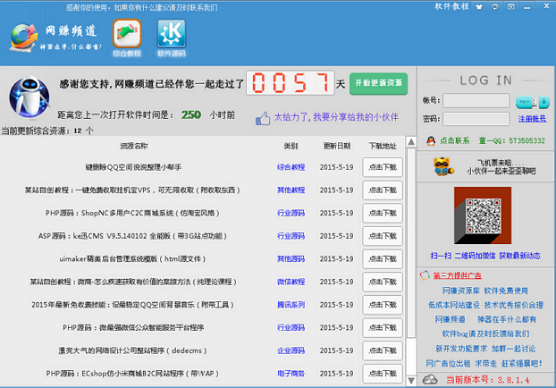 在这里感谢网友提供的宝贵意见和bug测试反馈。才得到这个版本。我们还在努力完善相关功能。同时也希望同行朋友们一起来参与开发。共同努力打造网赚资源库这款软件。后续将会根据网友的反馈及时调整或开发新功能。请记住网赚资源库软件将会将免费进行到底,只为一个爱好。