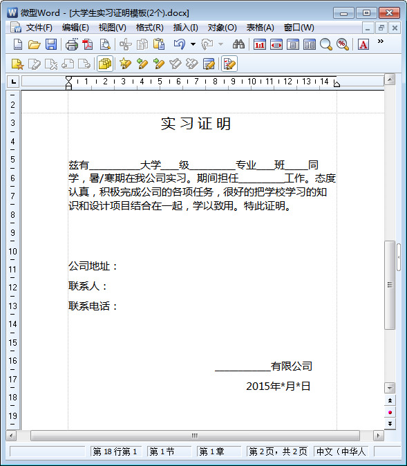 兹有___________大学____级__________专业____班_____同学,暑/寒期在我公司实习。期间担任__________工作。态度认真,积极完成公司的各项任务,很好的把学校学习的知识和设计项目结合在一起,学以致用。特此证明。