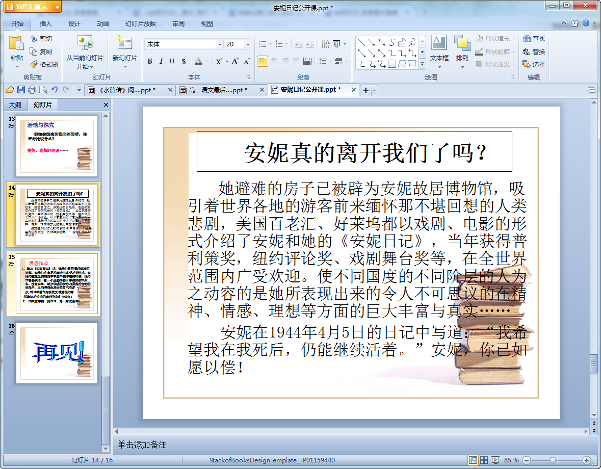 安妮在1944年4月5日的日记中写道:“我希望我在我死后,仍能继续活着。”安妮,你已如愿以偿!
