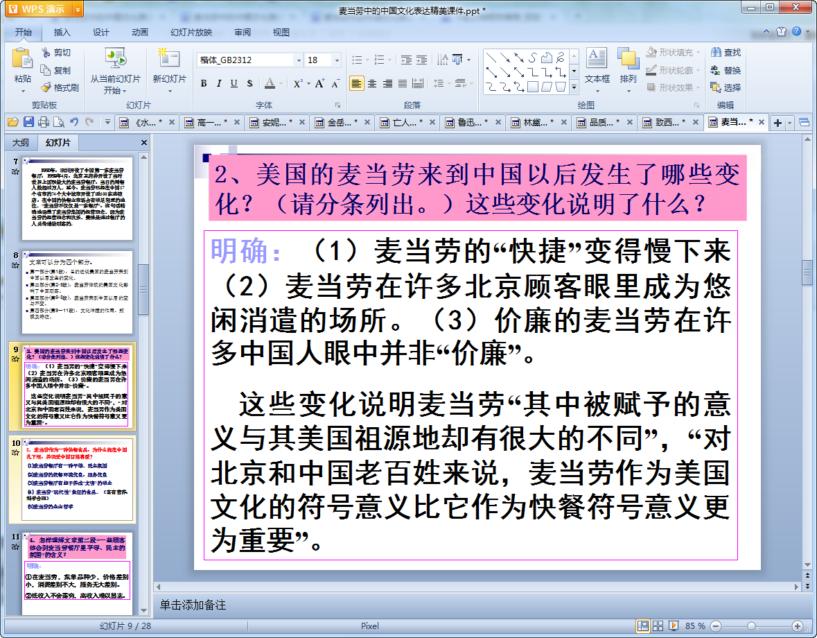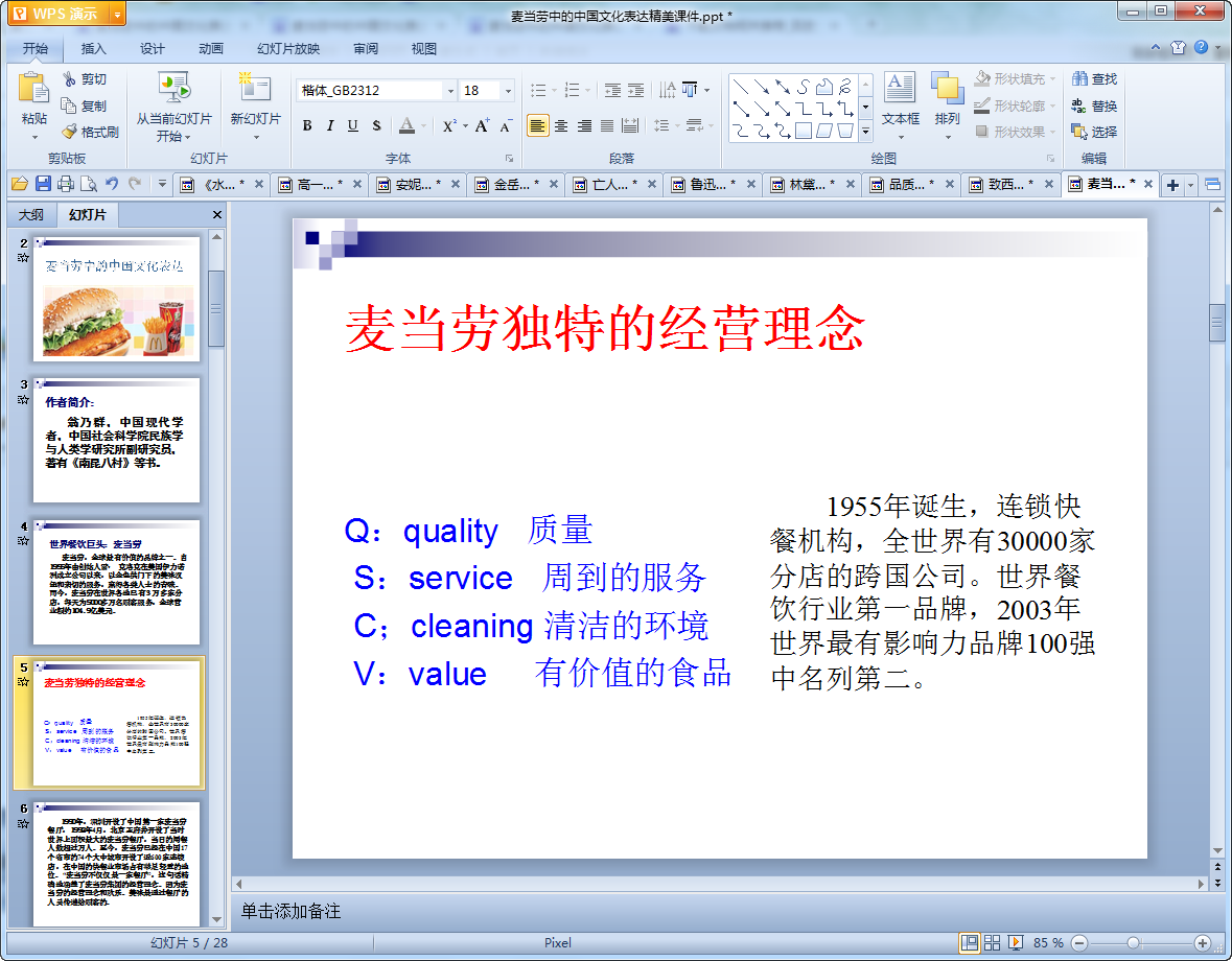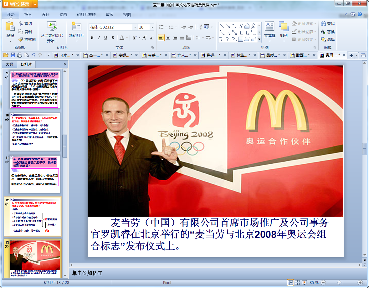这是一篇麦当劳中的中国文化表达ppt课件,该课件共有28页详细的解析了课文,介绍可麦当劳在中国的发展历程,需要这篇教学课件的老师们可以来下载使用,不会让您失望!