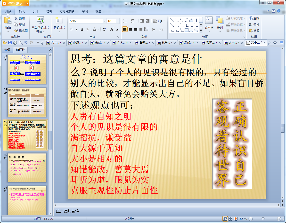 下述观点也可:人贵有自知之明个人的见识是很有限的满招损,谦受益自大源于无知大小是相对的