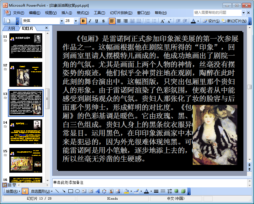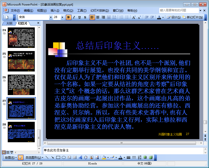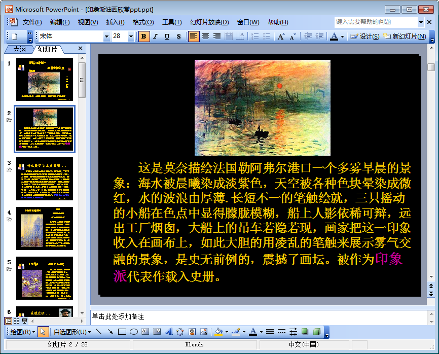 关于印象派油画你了解多少呢?本节内容东坡小编为大家整理带来的是一份由28页组成的印象派油画欣赏ppt,想要欣赏莫奈或是爱德华.马奈的大作的朋友们不妨一起来看看吧!该ppt文字介绍完整,油画作品清晰,有需要的朋友可以下载下来进行查阅!