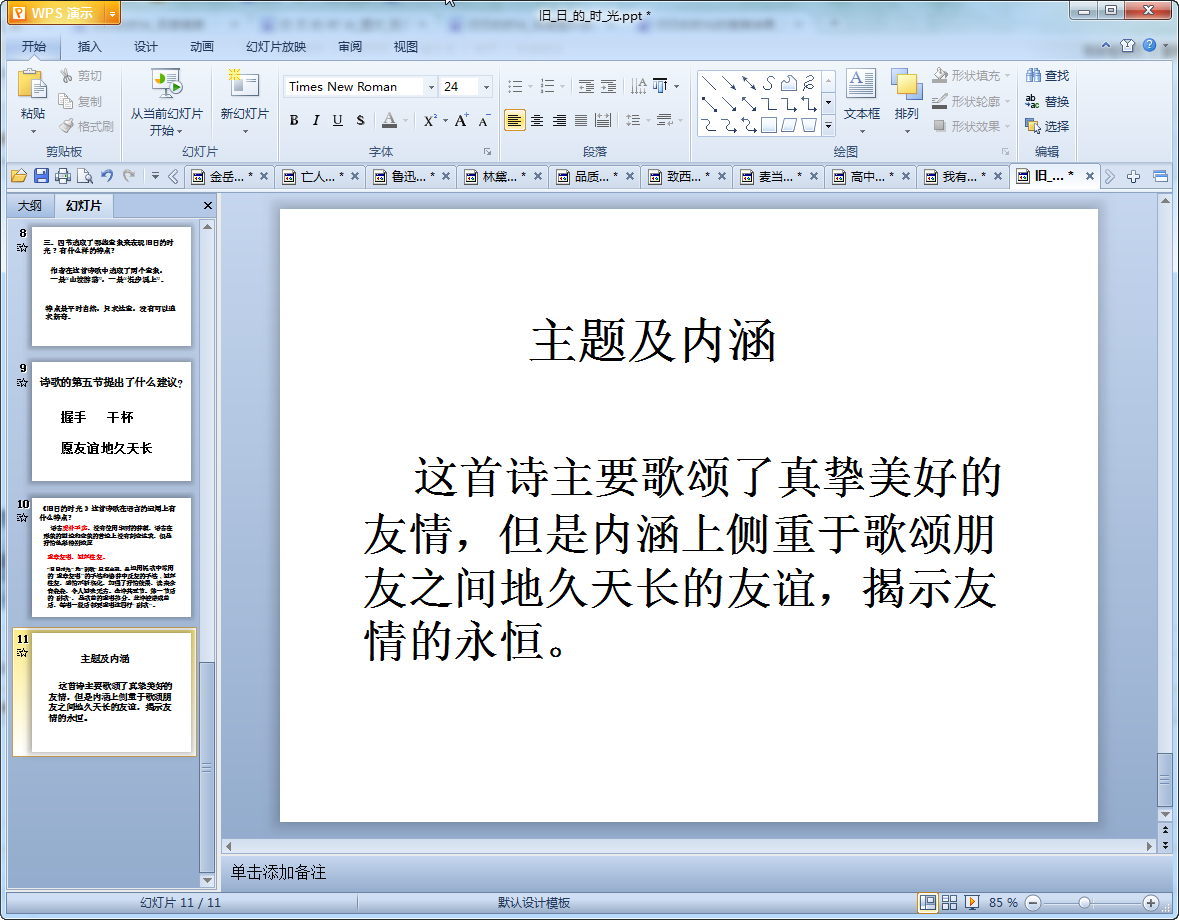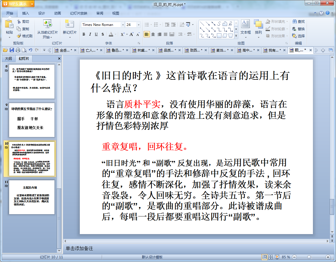 这是高中语文课文旧日的时光教学课件ppt,该ppt共有11页制作简单简洁但是对文章的讲解解析却十分详细,有需要的老师们可以来下载这篇课件,我们东陂为大家体面免费的下载!