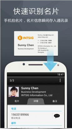 * 瞬间识别、智能管理名片,迅速保存至手机通讯录