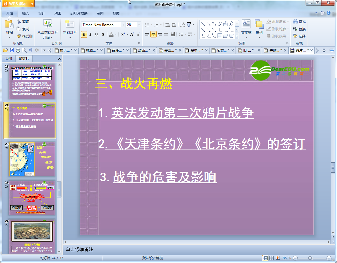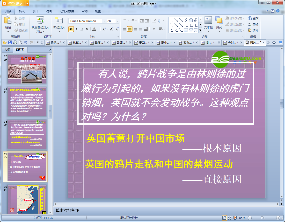 这是由东坡下载站编辑整理的鸦片战争教学课件,该课件共有37页,详细的描述了鸦片战争的起因与结果以及失败的原因,对课文解析的十分详细的一篇教学ppt,有兴趣的老师们可以来下载使用!
