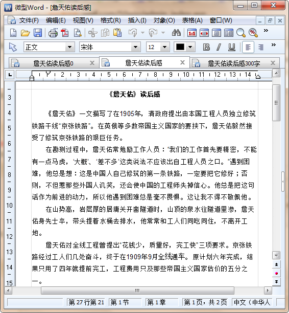 这篇doc格式word版詹天佑读后感合集中共包含有三篇詹天佑读后感范文,不管你是需要300字的詹天佑读后感还是800字詹天佑读后感,这份文档都能为你提供帮助哦!下文是该读后感合集的相关内容摘选,希望对大家有所帮助!
