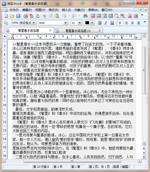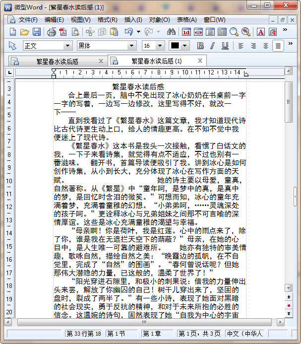 冰心的诗含蓄深刻,字里行间透漏着作者的独具匠心,不知为什么,看了这繁星春水,我的心灵微微触动了一下, 也许,这便是感动......