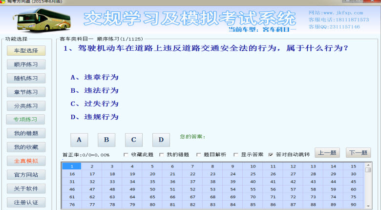 下面是模拟考试界面,与车管所的界面100%一致,出题规律符合考试要求,消除应考好奇心,自己在家就知道能考多少分