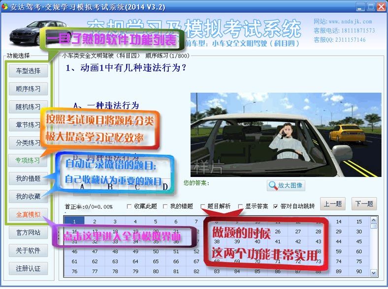 1、车型完整 软件题库支持所有车型、题库为2015年5月1日公布的官方最新题库,全国通用;