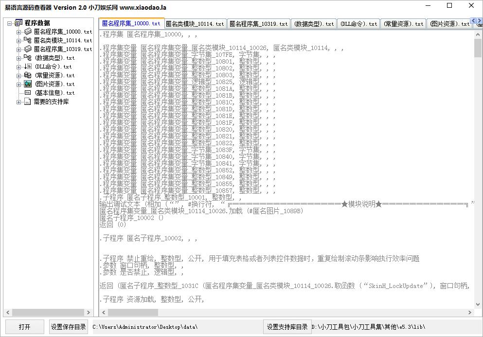 易语言源码查看器可以通过反编译轻松查看、获取到易语言源码,软件使用很简单,需要本机上备有易语言,然后易语言程序最好是不带网络验证或者是加壳的,否则获取起来有点难度。有了源码,啥事都好办,需要的朋友可以下载试试哦!