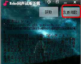 3、点击我要淘歌,随机播放歌曲,一首接着一首(目前我加入了10W首),都是灰常好听的(下载地址和歌词都会出来的)