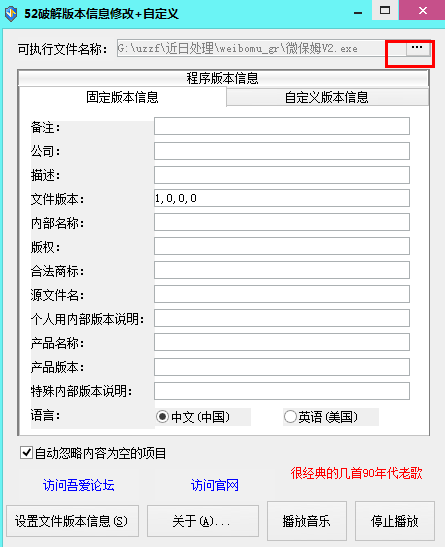 52破解版本信息修改自定义工具是一款能够修改软件的版本以及作者信息的软件,不需要太多的操作,就可以轻松的进行修改,而且还可以在里面添加大量的有用信息。