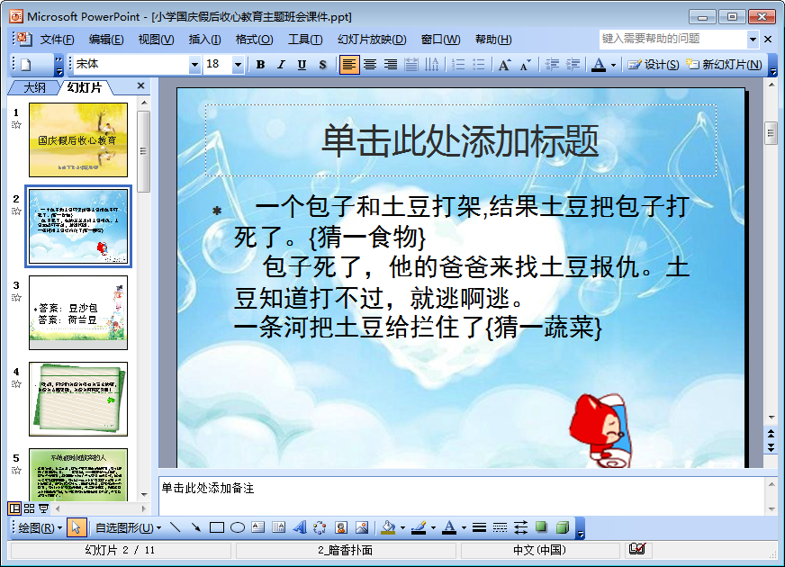 小学生中秋节主题班会ppt(共39页)卡通版免费