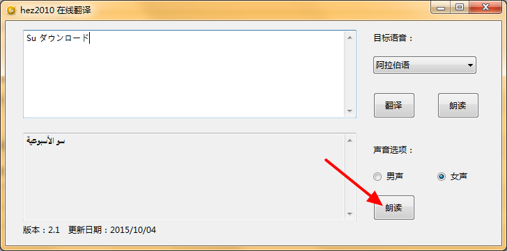 这里是小编把刚才的日语翻译成阿拉伯语,翻译完成后,还是支持朗读操作的,男声、女声都行