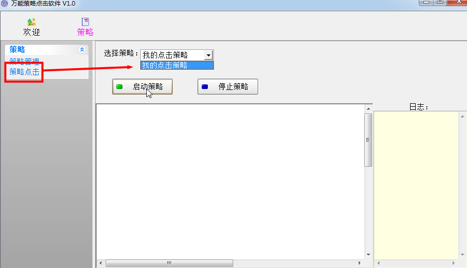 2、这是选择“策略点击”,最后进行点击【启动策略】