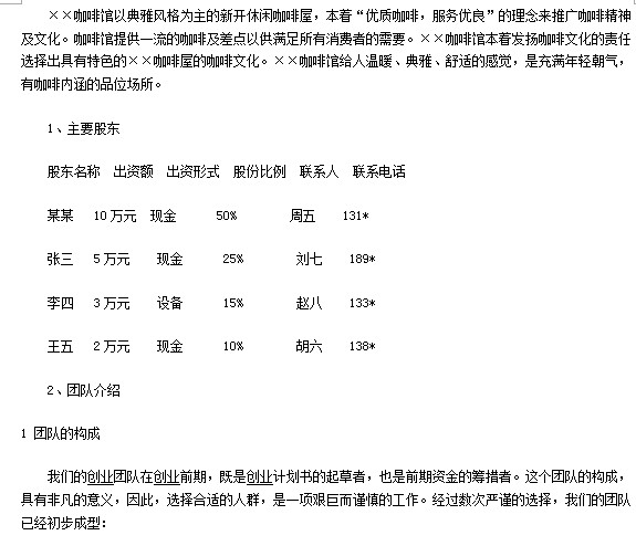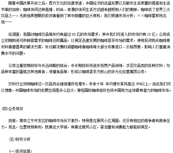咖啡店创业计划书内容介绍